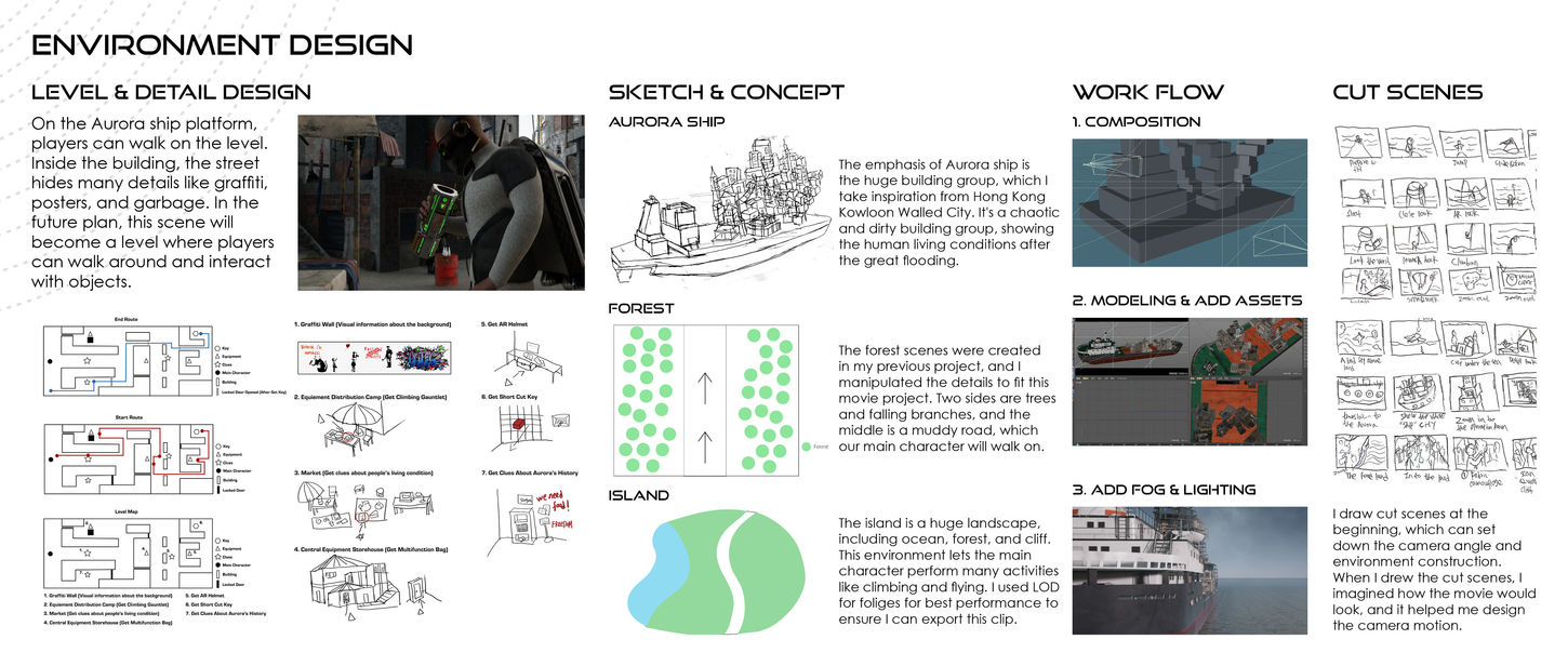 "Aurora" is an independent CG project that I completed, depicting how humanity survives in a world submerged by water. I hope this CG sequence can vividly convey to the audience the profound impact that extreme climate changes can have on our lives.